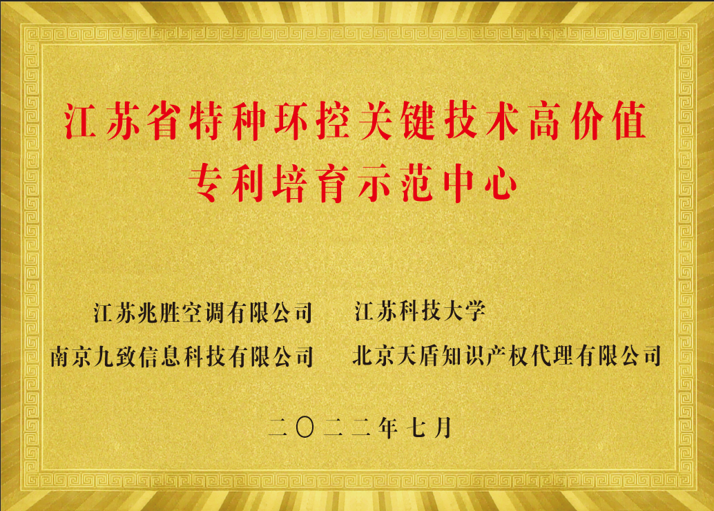 被評(píng)為江蘇省特種環(huán)控關(guān)鍵技術(shù)高價(jià)值專(zhuān)利培育示范中心;